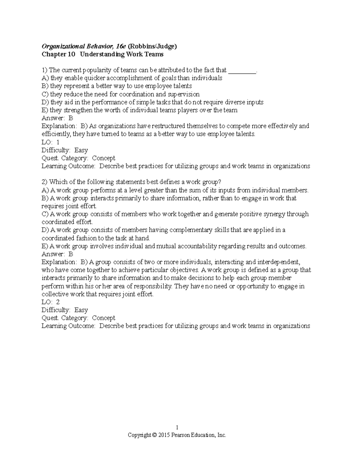 Organization Behavior Test Bank Robbins Ob14 Tif03 Organizational Behavior 14e Robbins Judge Studocu